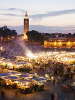 The sun is beginning to set and the central hub of the Medina is already filling with locals and tourists. Mesmerised by the colourful display, I people-watch to a soundtrack of distant, beating drums; a snake charmer’s shrill flute; and the hum of voices — friends chatting, and cigarette-toting vendors hawking a dizzying array of wares that even include human teeth….